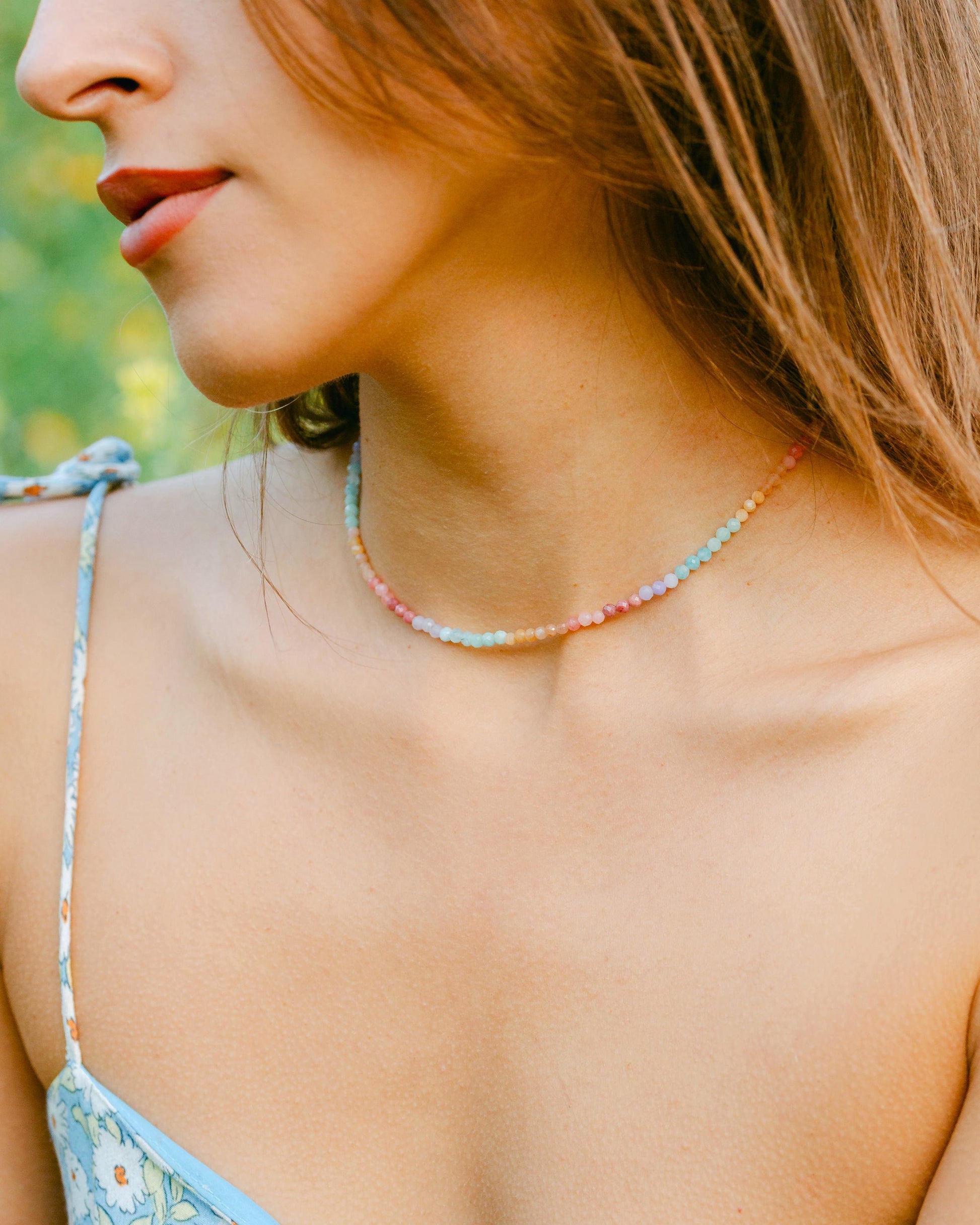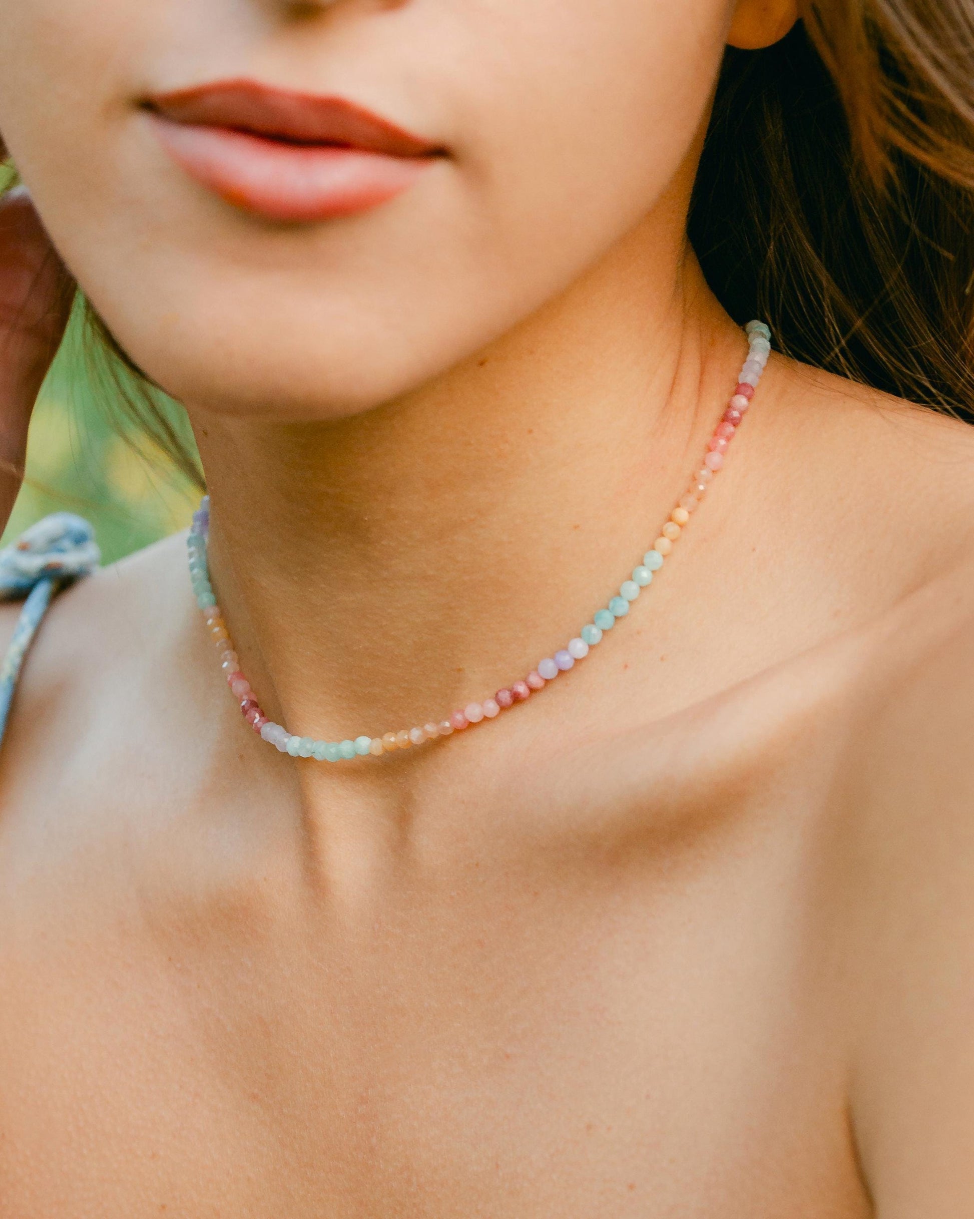 RAINBOW - Bunte Perlenkette aus echten Edelsteinen in Regenbogenfarben